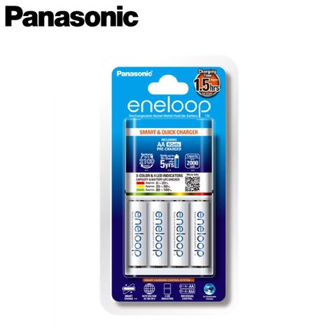 PANASONIC ENELOOP 3 COLOR LED 1.5Hrs Smart Quick Charger Kit + 4 x 2000mAh AA Batteries K-KJ55MCC40M