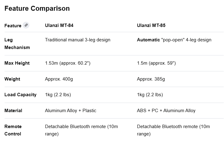 - Extendable Center Column: They both extend to form a tall selfie stick or tripod (around 1.5 meters or 59–60 inches), making them suitable for full-body shots and various filming angles.